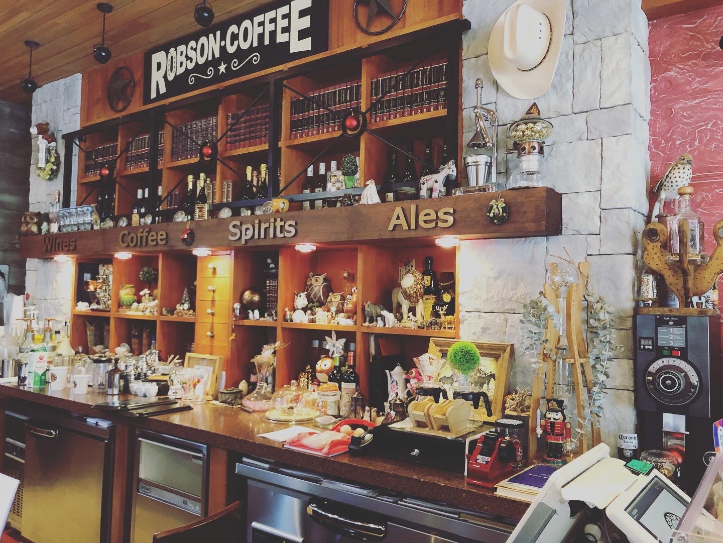 택사스 주 어느 카페에 온 듯 원목과 앤틱한 소품들로 꾸며져있어요.
