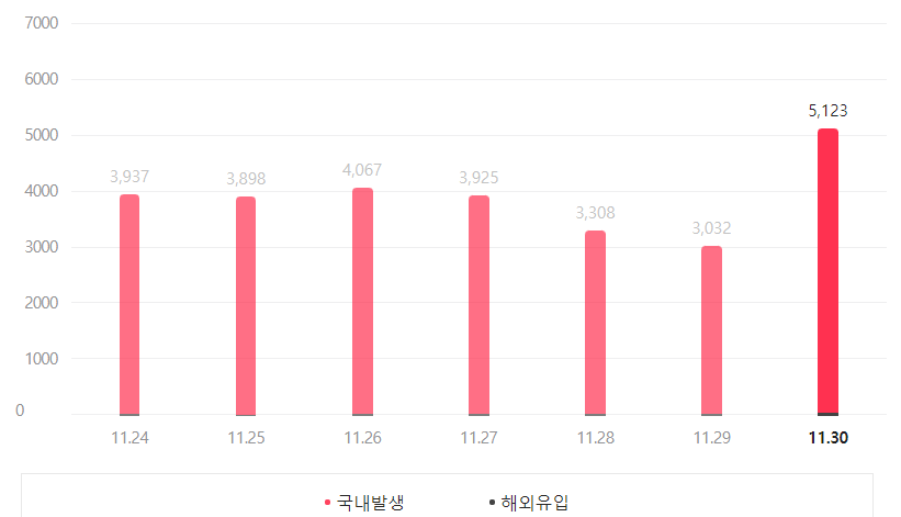 오늘(12월 1일) 코로나19 확진자 수가 5,123명으로 집계되었어요.