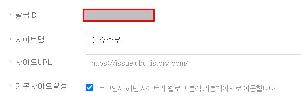 발급 ID는 복사하여 본인의 티스토리로 돌아옵니다.
