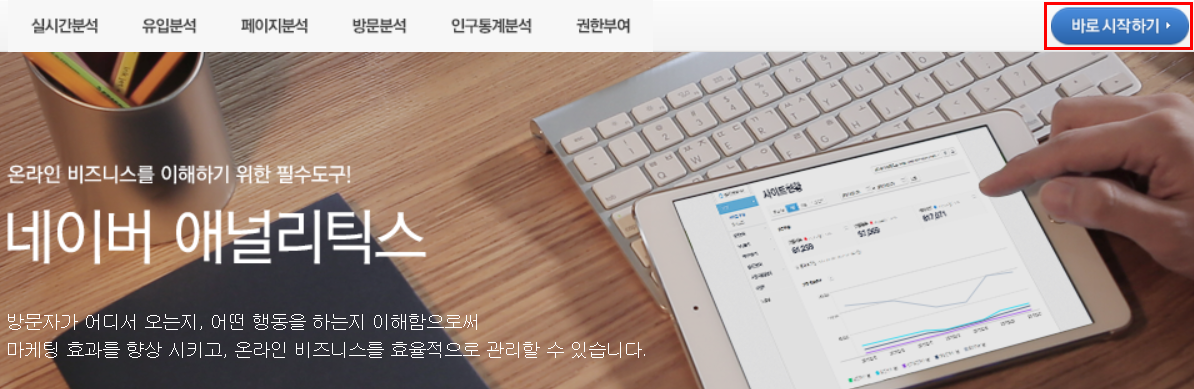 네이버 애널리틱스 바로 시작하기를 클릭합니다.
