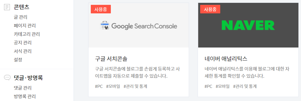 티스토리 블로그 관리 홈에서 플러그인을 누릅니다.