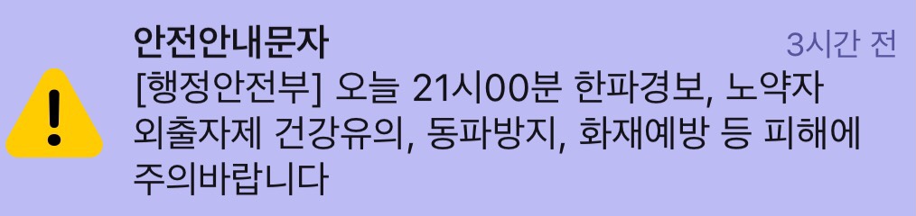 오늘 오후에 안전 안내 문자가 하나 도착했습니다.