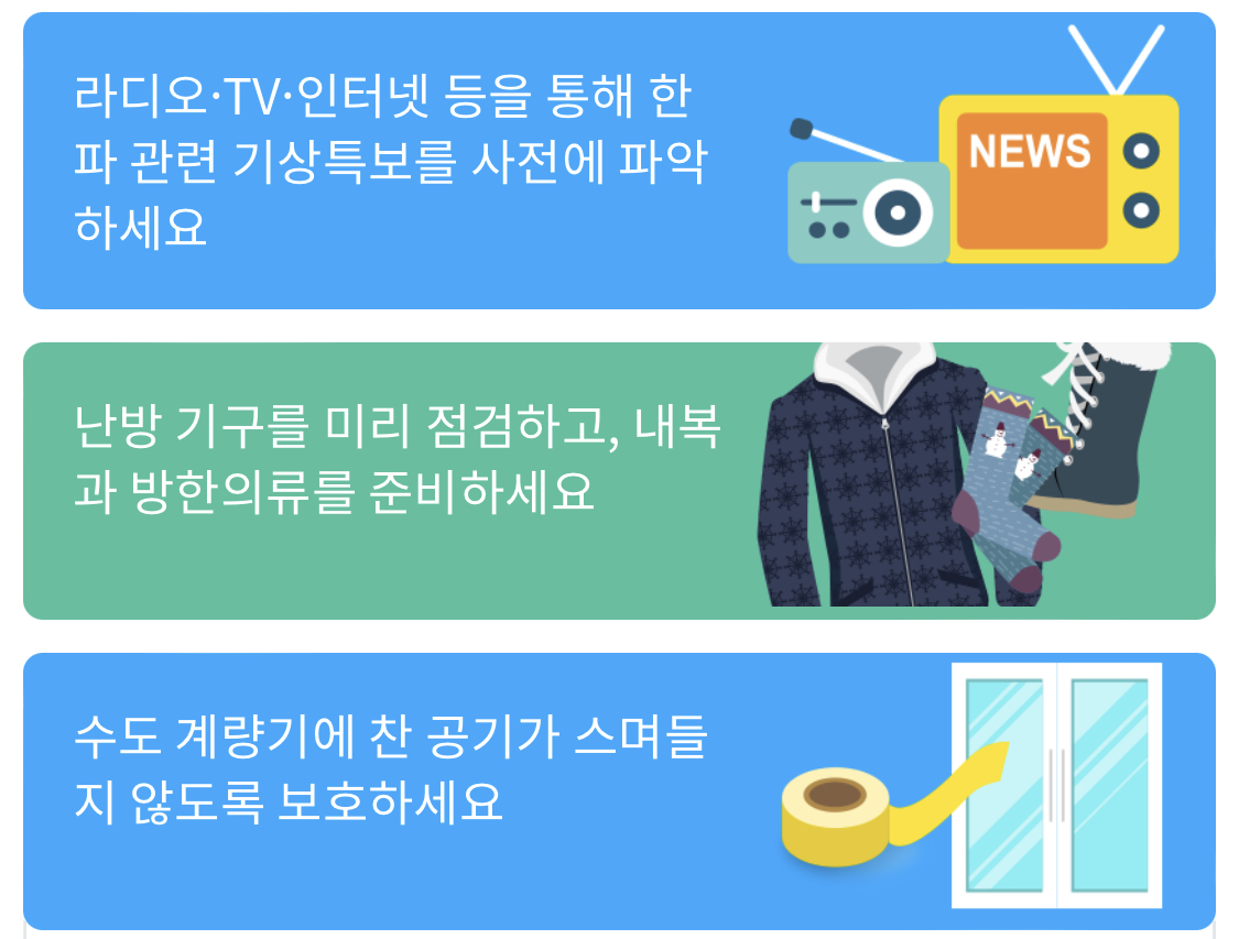 한파대비 시민 행동요령이라 하니 공유합니다.