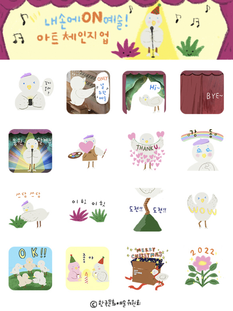 장미 작가와 한국문화예술위원회가 만나 탄생한 아트 체인지업 이모티콘입니다.