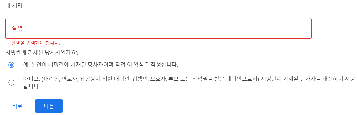 대리인이 아니라면 예에 체크합니다.