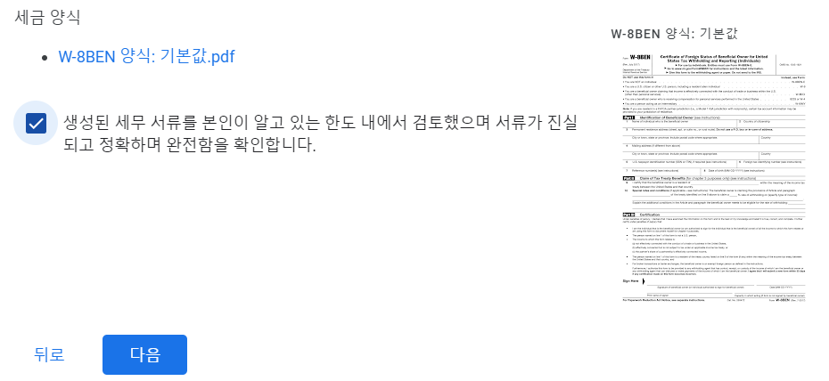 W-8BEN 세금보고 양식으로 들어갑니다.