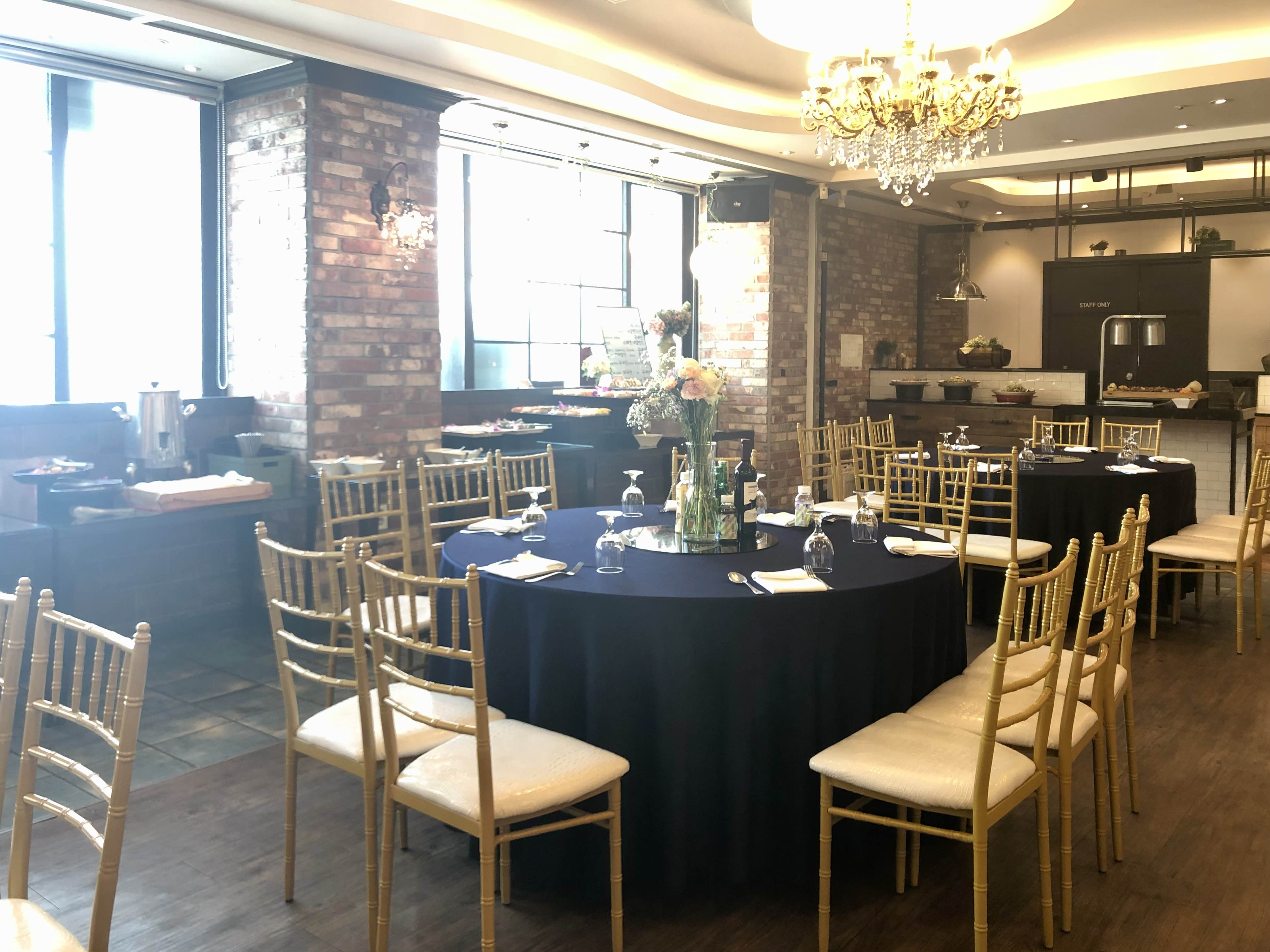 돌잔치 실내로 들어서자 10인용 원탁이 10개 보였어요.