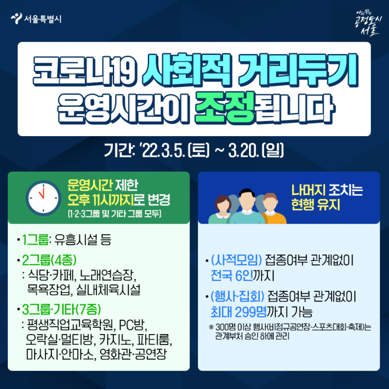 | 2월 19일부터 거리두기 조정(영업시간 밤 9시→밤10시) (23) | 2022.02.18 |