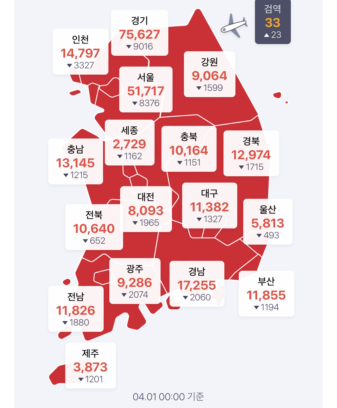 그럼 4월 1일 만우절 코로나 확진자 수에 대해 알려드리겠습니다.