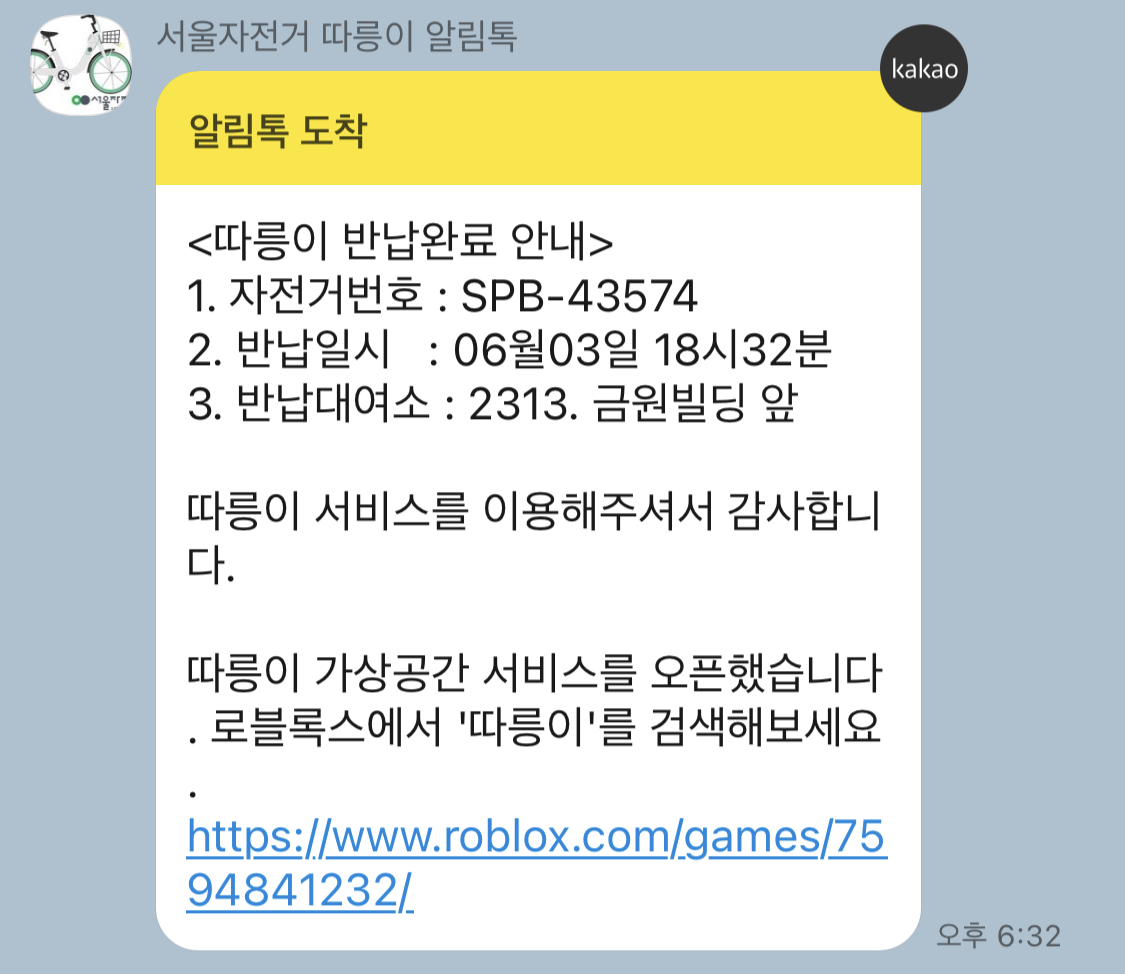 "반납되었습니다"라는 음성과 함께 문자가 도착합니다.