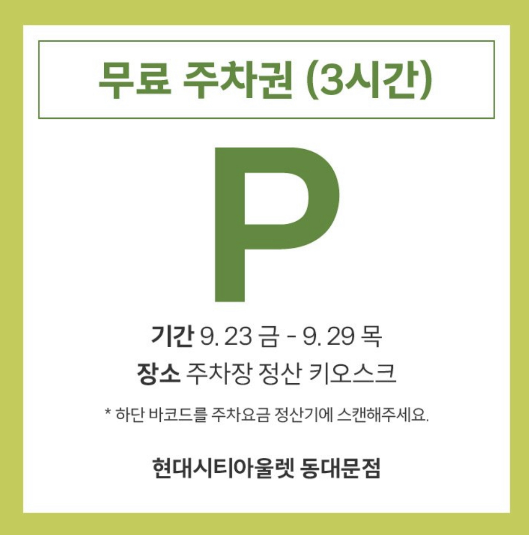 현대시티아울렛 동대문점 카톡 친구추가하면 무료주차권을 받을 수 있습니다.