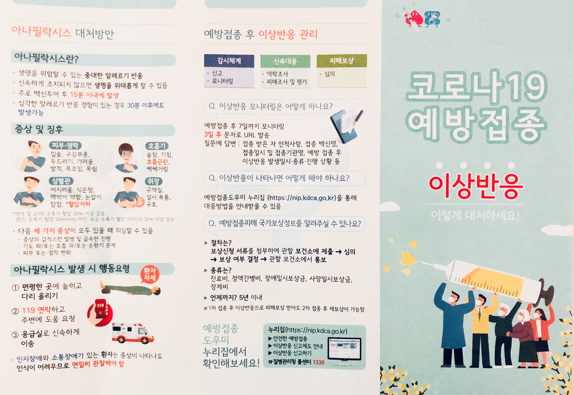 팸플릿은 예방 접종 이상반응에 대한 내용이었어요.