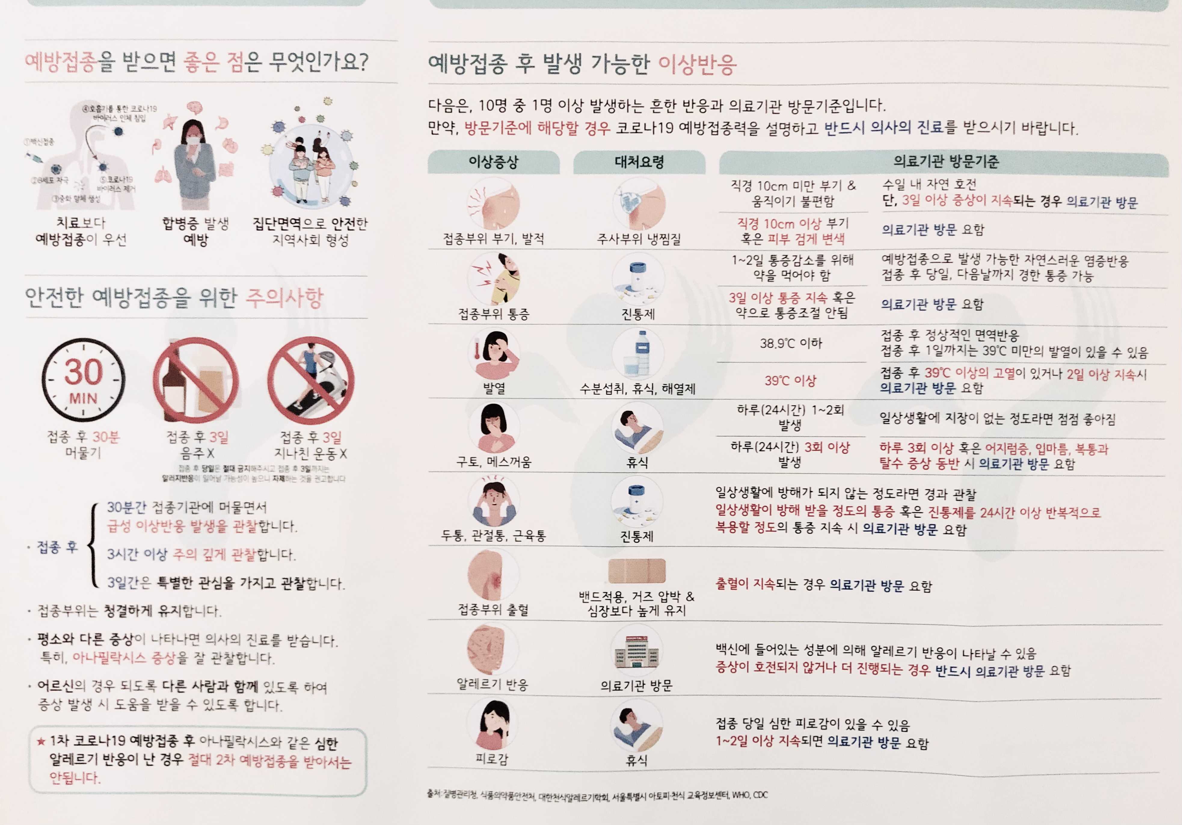 백신 접종 전 해야 할 일, 접종 시 작성하는 것, 접종 후 주의사항 등을 알려드릴게요.