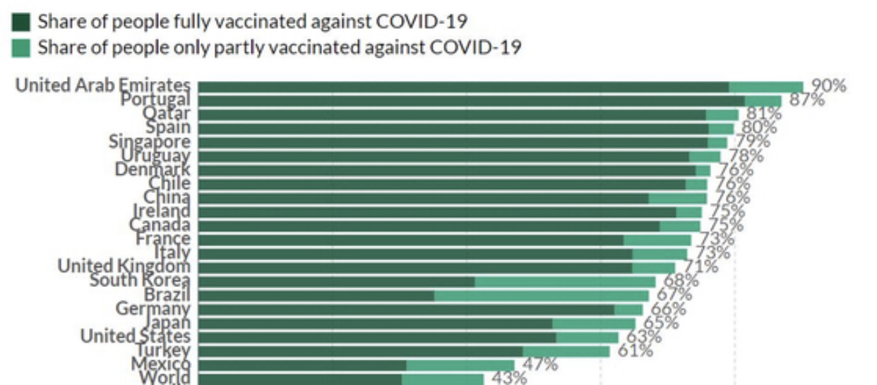 다른 나라의 1차 접종 완료율은 어떨까요?