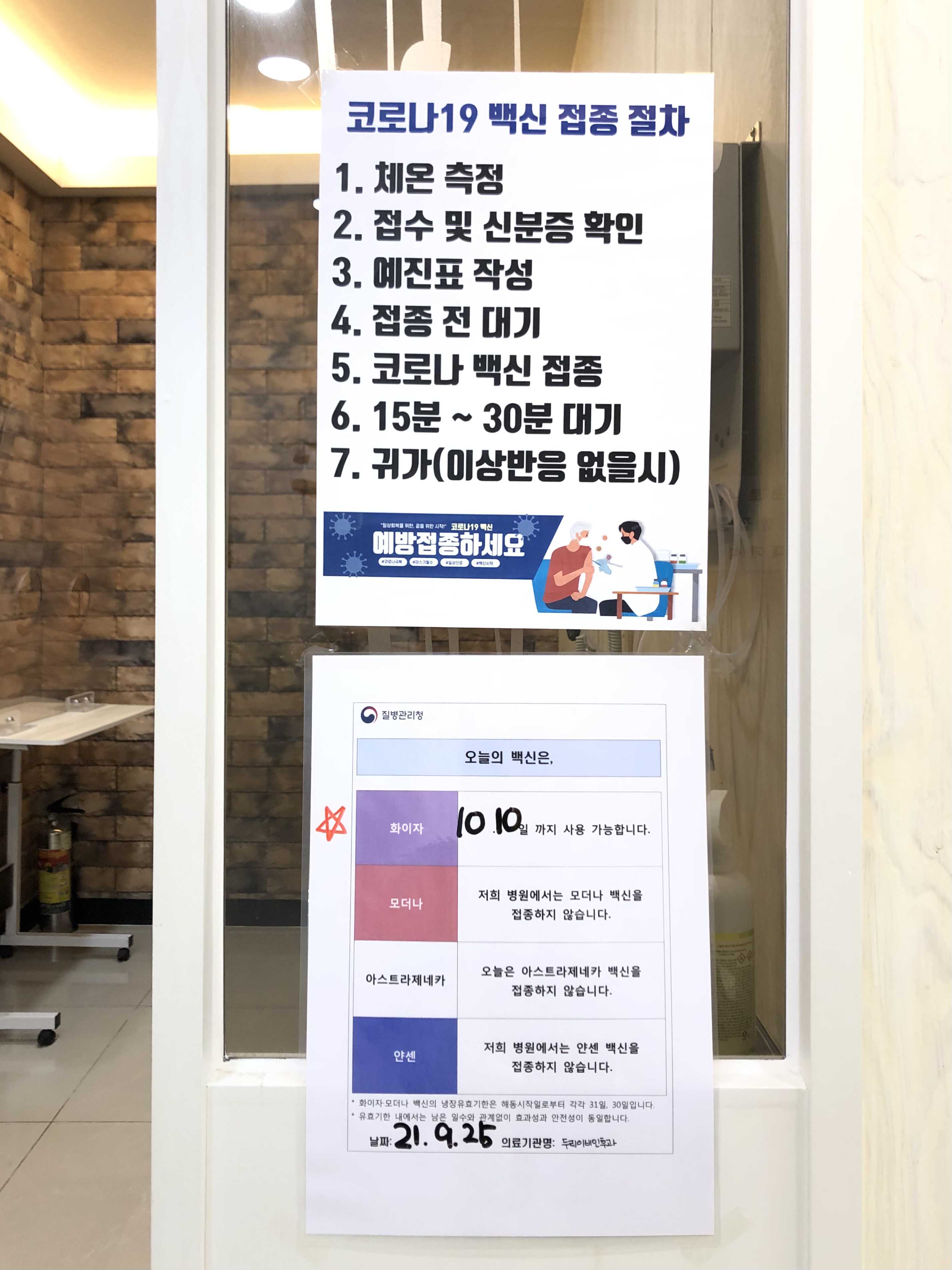 이름이 불리고 백신종류 확인하고 접종 시작!