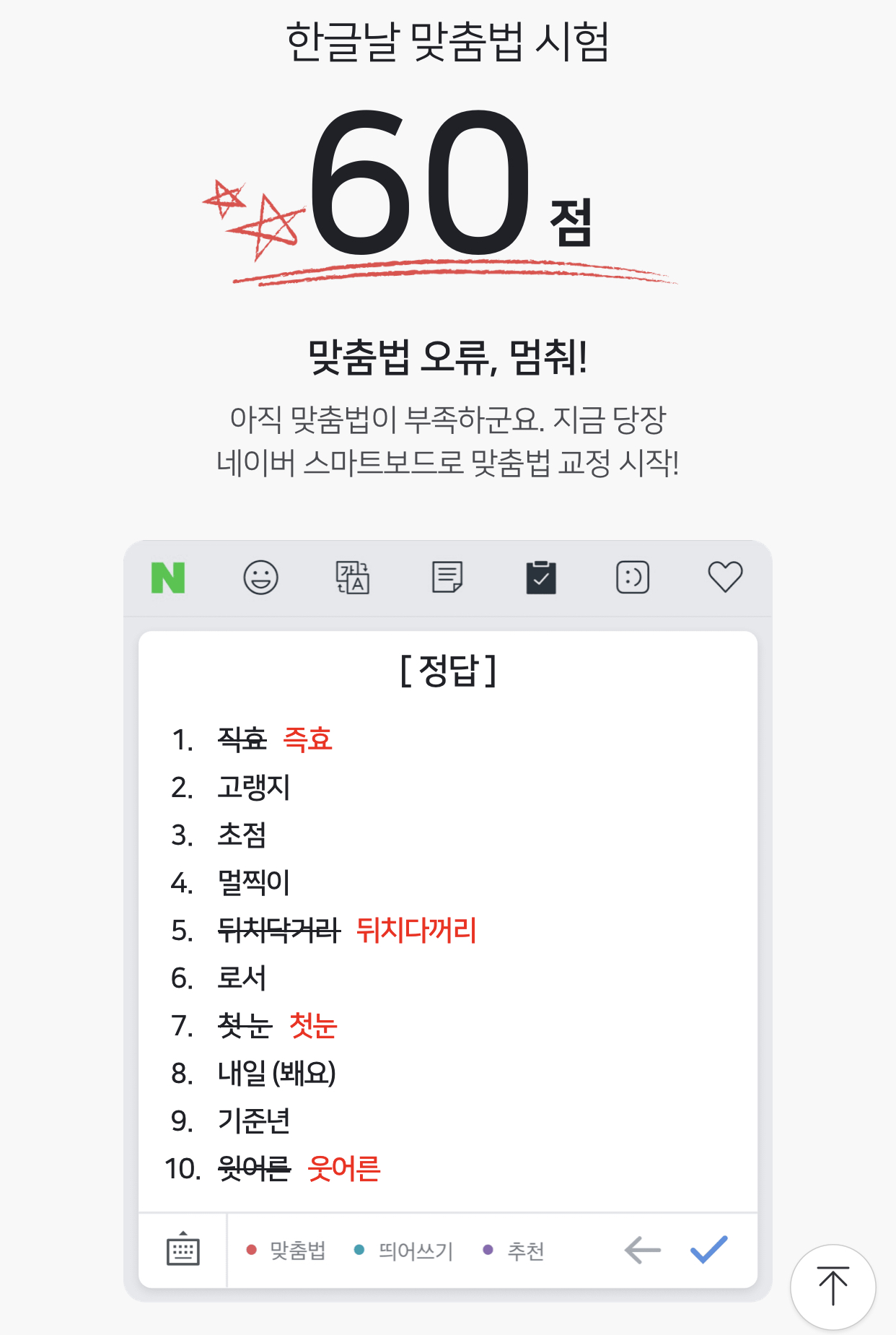 <네이버 한글 맞춤법 시험>