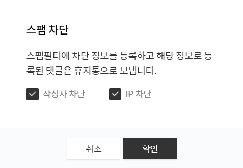 '작성자 차단'과 함께 'IP 차단'을 같이 체크하고 확인을 누릅니다.