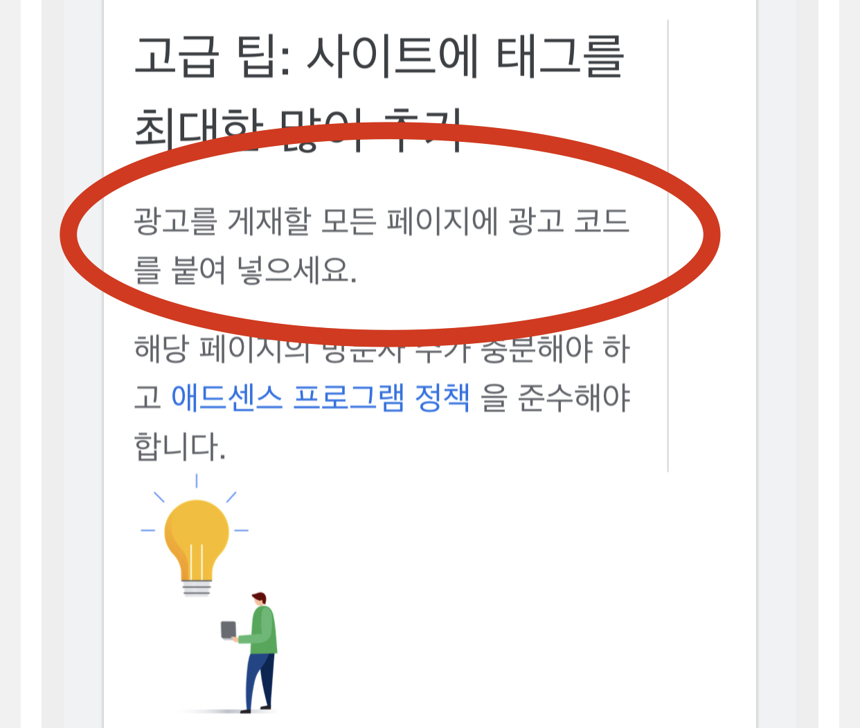 이메일에 있는 글귀, '광고를 게재할 모든 페이지에 광고 코드를 붙여 넣으세요'는 또 무슨 말일까요?